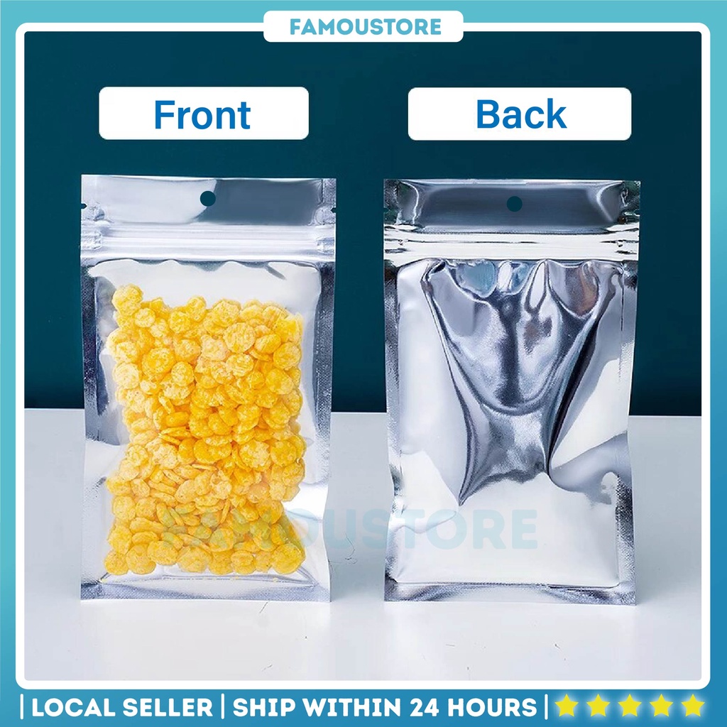100PCS Zipper Aluminium Foil Bag Aluminum Ziplock Bag AO Semi Metalised Bag Zip Lock Food Packaging Aluminum Beg