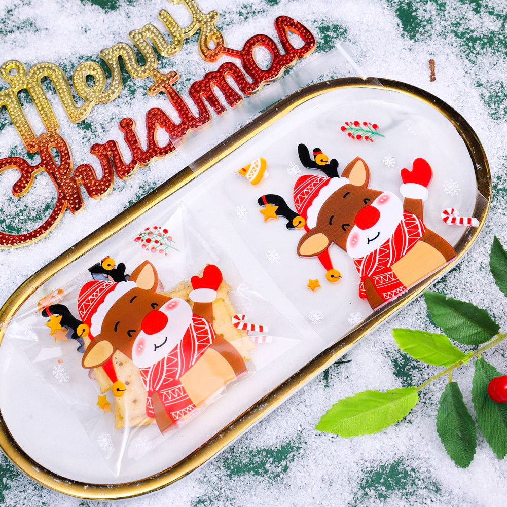 100Pcs Christmas Series Transparent Plastic Candy Bags - Cute Santa Claus Snowman Pattern Snack Cookie Gifts Seal Pouches Party Supplies