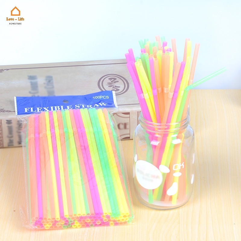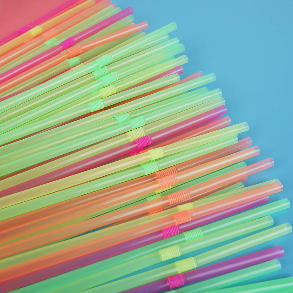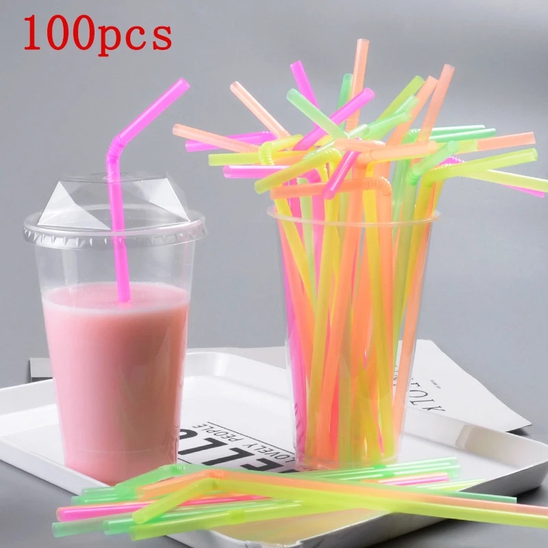 100Pcs Disposable Fluorescent Plastic Drinking Straws/21CM Flexible Bendable Straws/Mixed Colors Drink Straw Party Bar Accessories