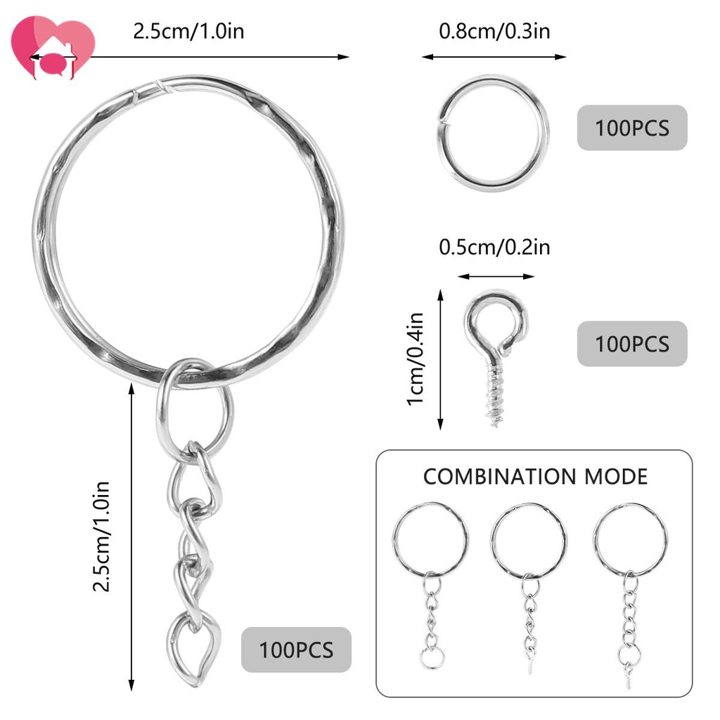 100Pcs Keychain Rings Split Key Ring with Chain for Resin 25mm Silver Key Chain Rings with Jump Rings & Screw Eye Pins