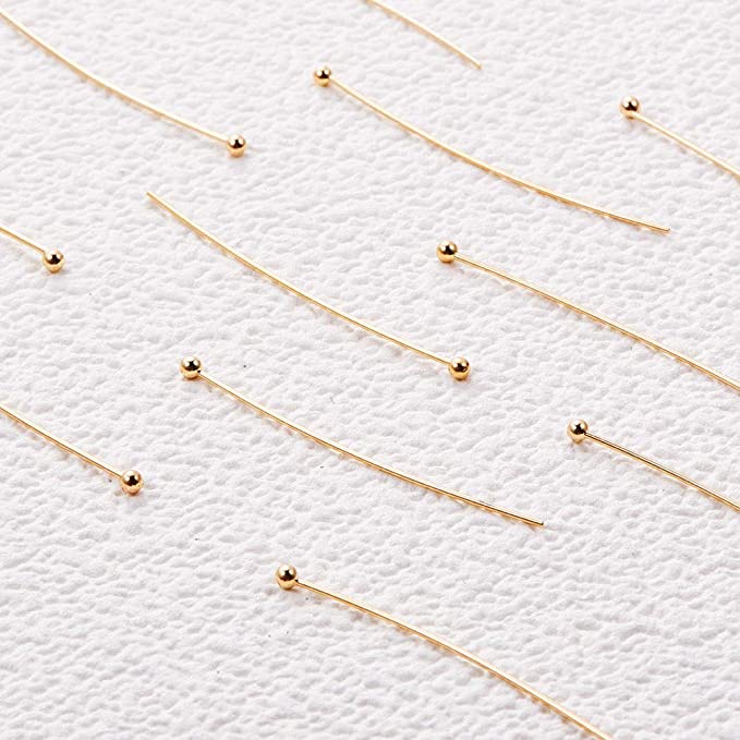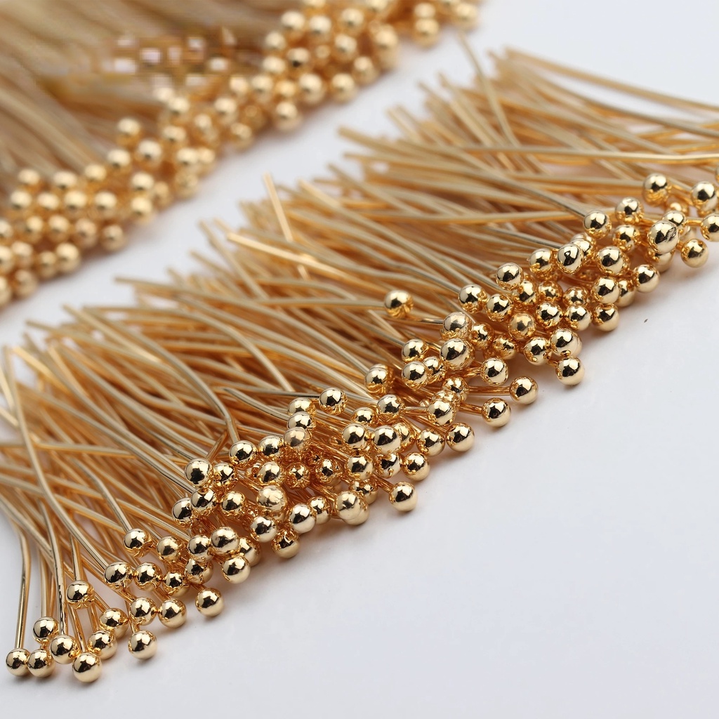 100Pcs/Lot Stainless Steel Metal Ball Head Pins / Gold Plated Pins Materials For DIY Jewelry Making / Earring Accessories Clasps Hooks / Gold Color Beads Needle Connector