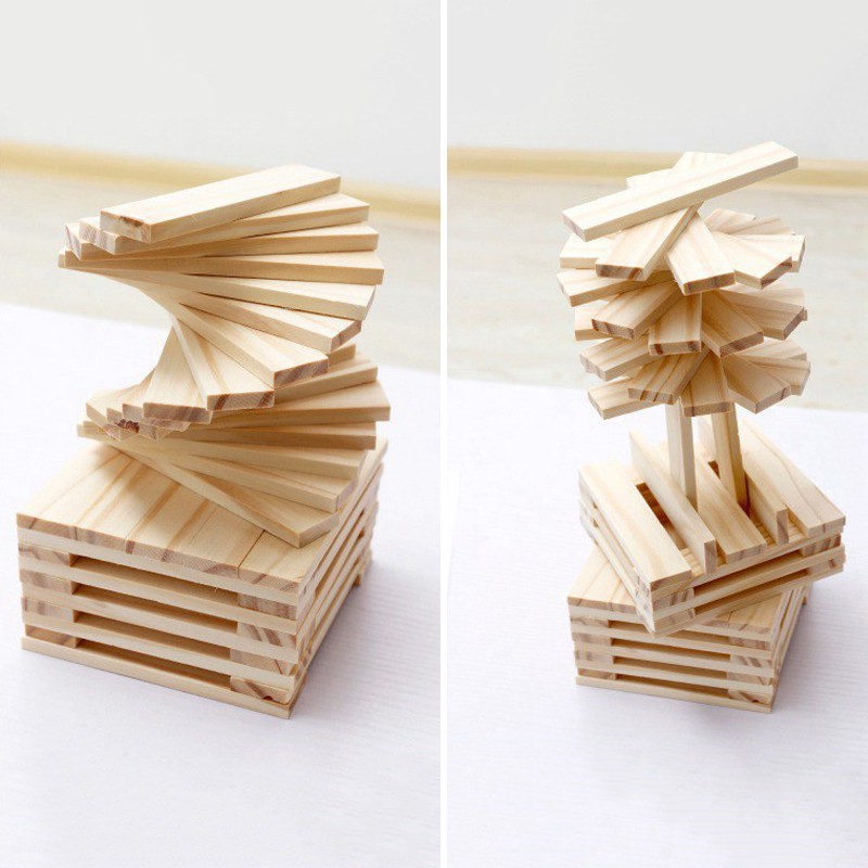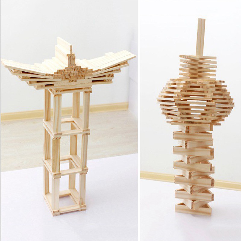 100Pcs Wooden Stick Building Blocks Kids Children Stacking Bricks Early Educational Domino Puzzle Toy Stick Stack - 6214