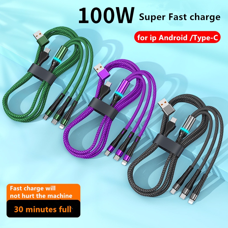 100W 2 in 3 Super Fast Charger Cable USB+Usb C to Usb c cable 6A Type C Charge Data Cable