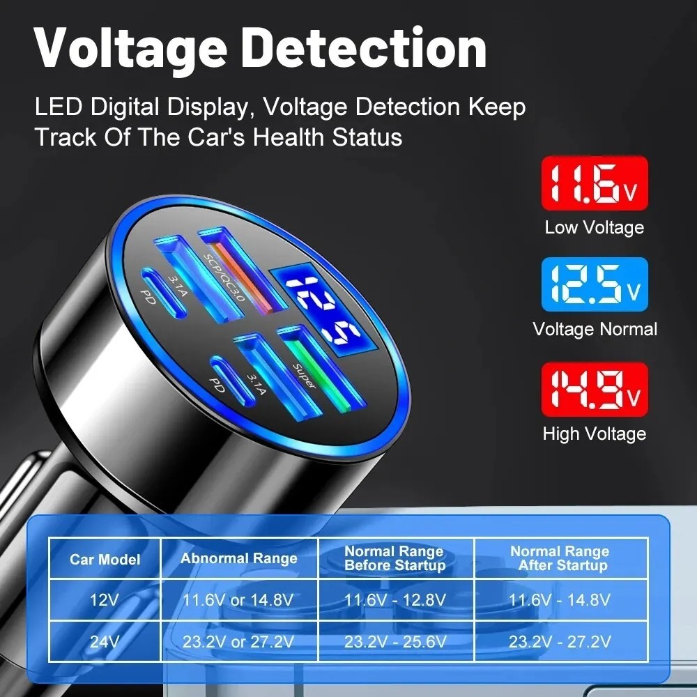 100W 6 Ports Car Charger Fast Charging PD QC3.0 USB C Car Phone Charger Type C Adapter in Car