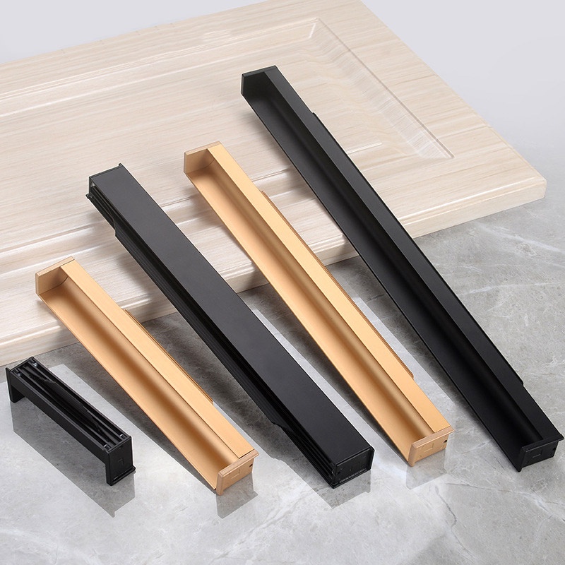 100mm-500mm Hidden Door Handle Black Gold Embedded Handle Aluminum alloy Door Invisible Cabinet Handle Recessed Pulls Knob Furniture Hardware