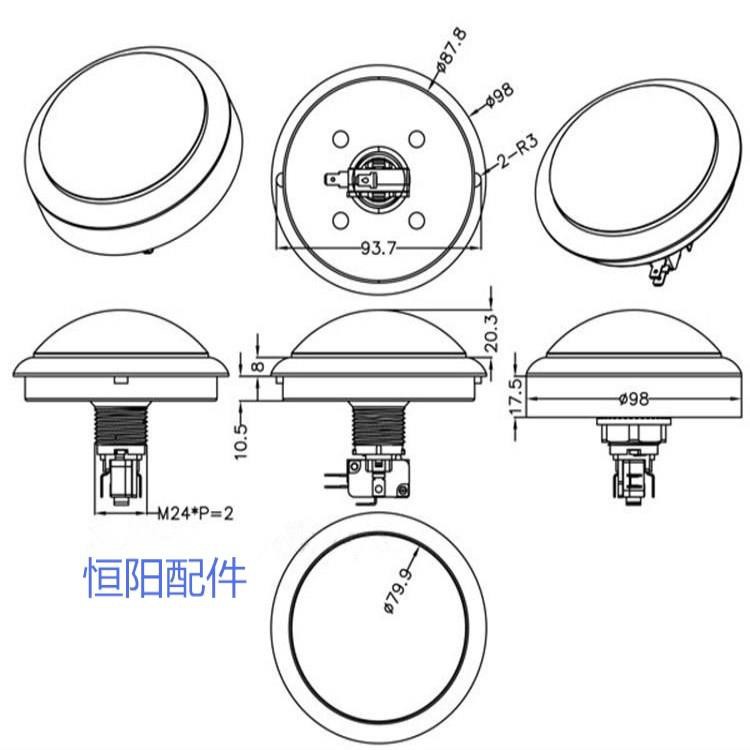 100mm Big Dome Push Press Button / Butang with 12V LED Light Switch