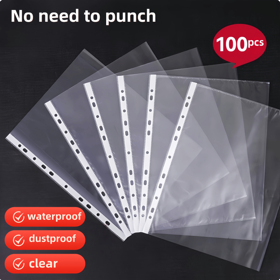 100pc clear holder file a4 fail plastik 3C/6C Durable 11 holes punch office file Organizer waterproof sheet protector a4