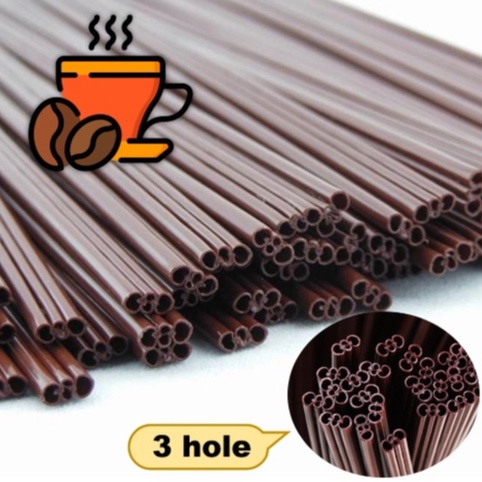 100pcs 17cm Coffee Stirrer Straw (3 hole) Brown | Penyedut Kopi Panas 17cm | Coffee Straw | Coffee Stirrer