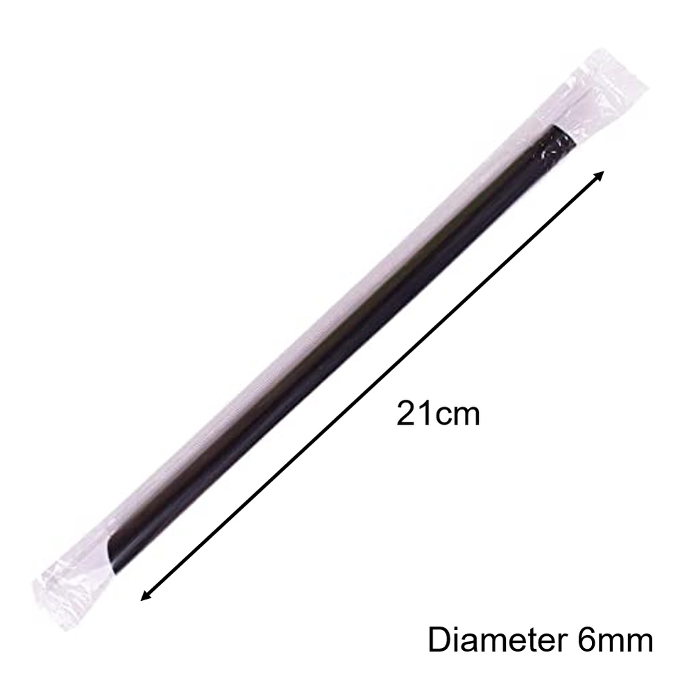 100pcs 8'' Black Straw (Individual Packing) 6mm 8mm Straw Sharp End Plastic Straw Milk Tea Coffee