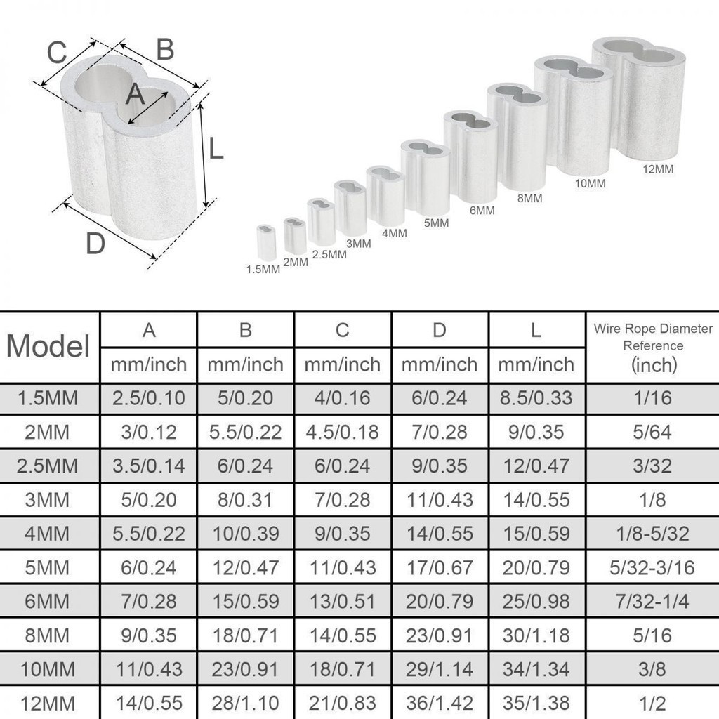 100pcs Aluminum Alloy Wire Rope Cable Loop Sleeves with Different Sizes Optional, Metal Looping Sleeves