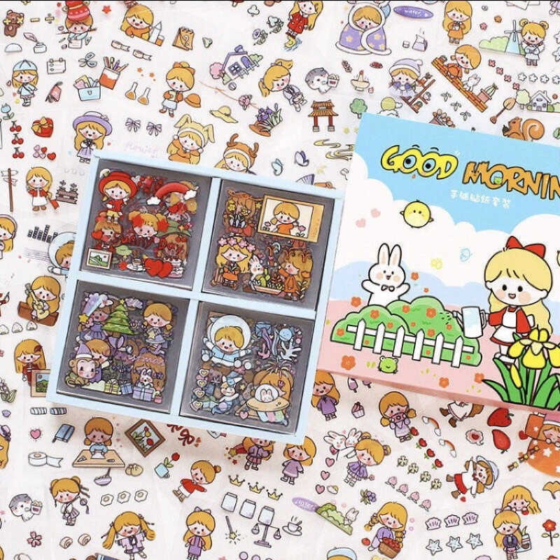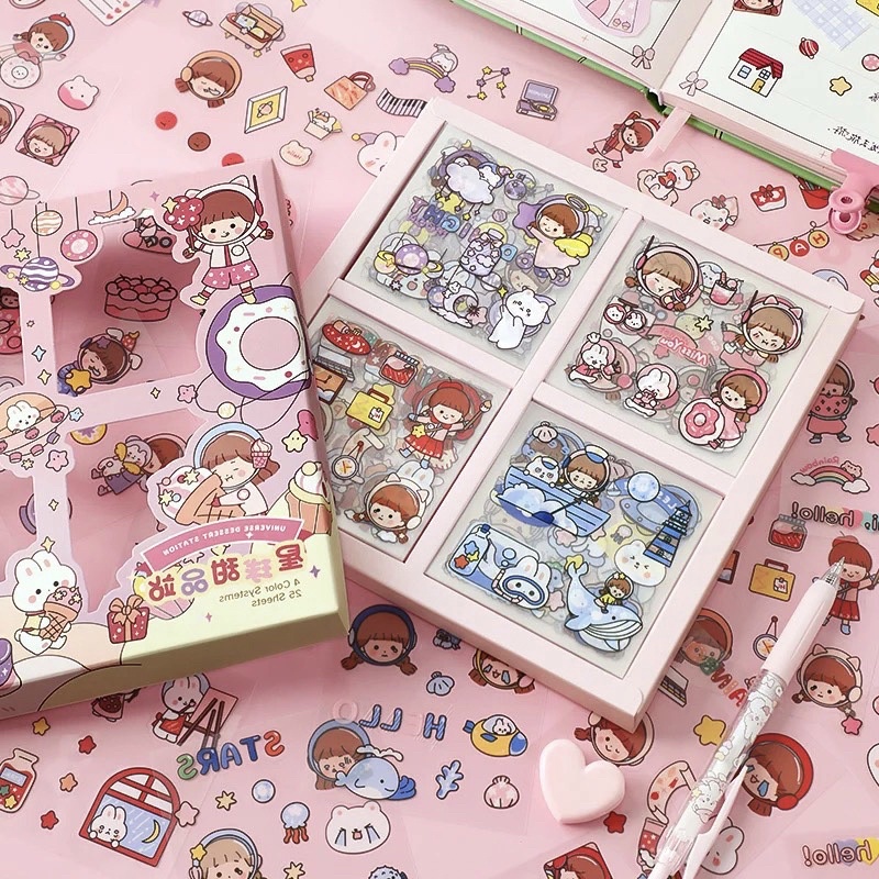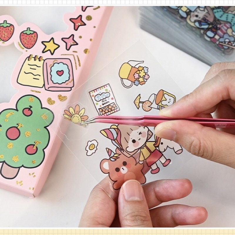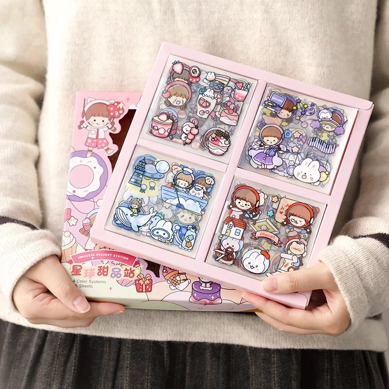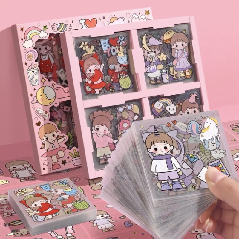 100pcs Cartoon Journal Stickers Gift Box Cute Non-Repeating Stickers Waterproof Material Notebook Diary DIY Stationery