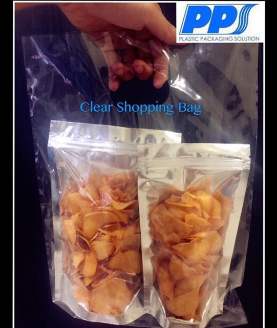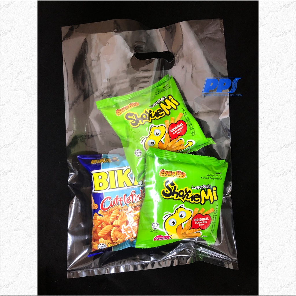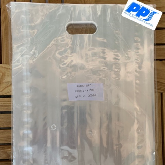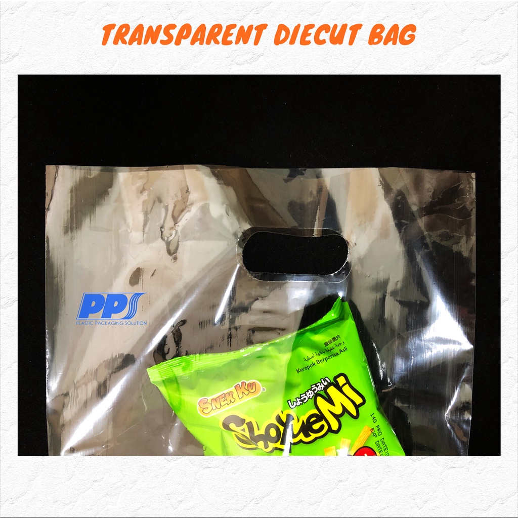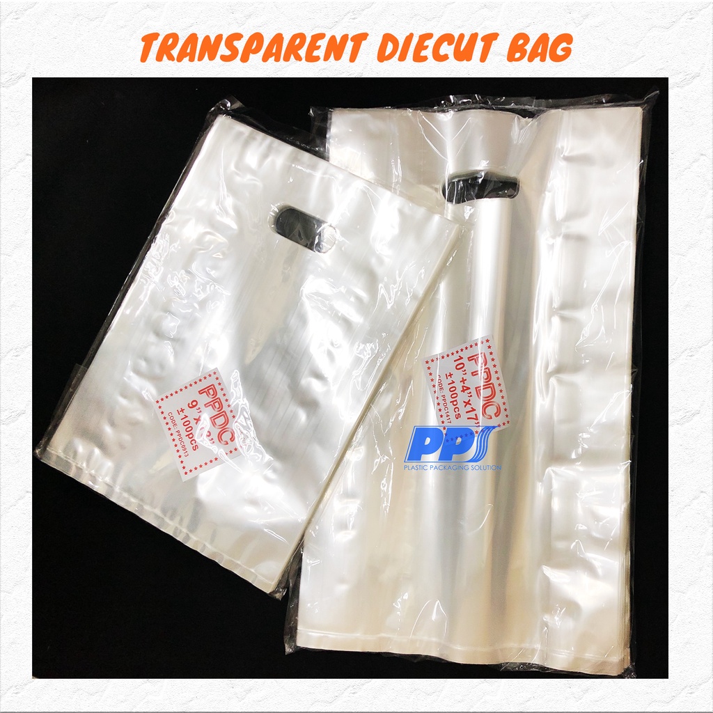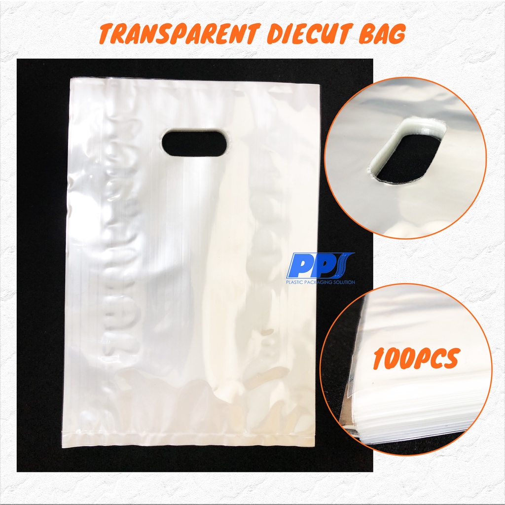 100pcs Clear Transparent Bag with Handle / Clear Shopping bag / PP transparent die cut bag