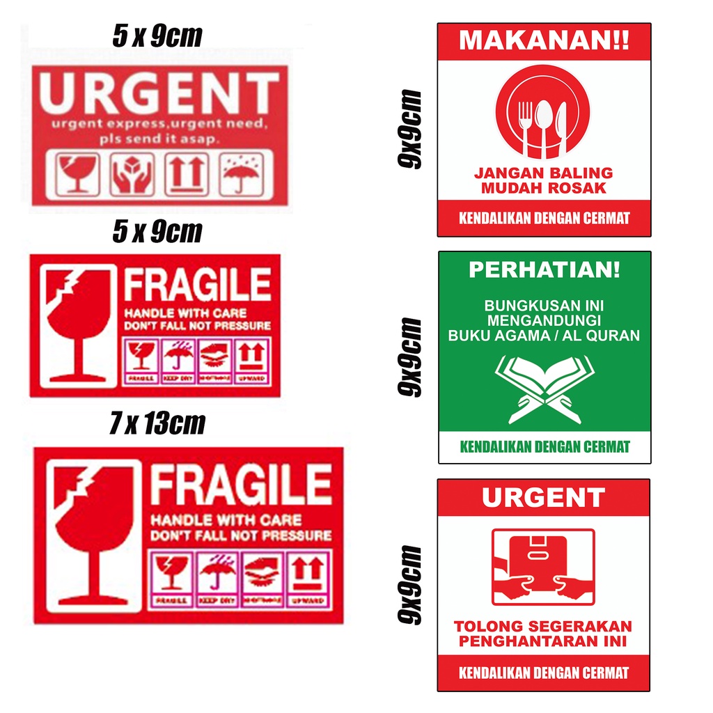 100pcs FRAGILE STICKER/ URGENT STICKER/ FOOD STICKER / QURAN STICKER for parcel saiz 5x9cm