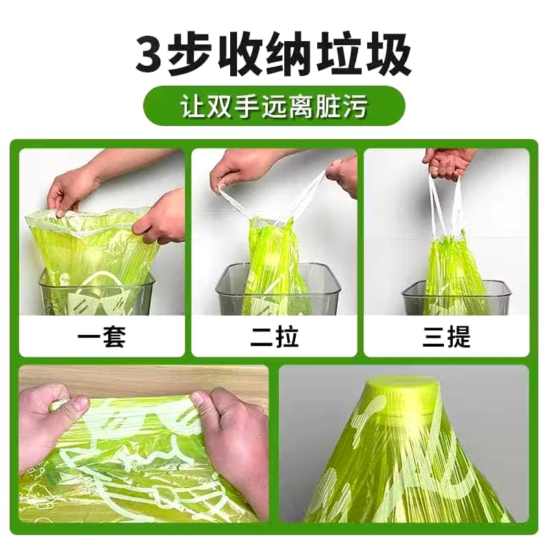 100pcs Garbage Bag Drawstring Kitchen Mosquito and Insect Repellent Large Capacity Garbage Bag Storage Simple Waterproof