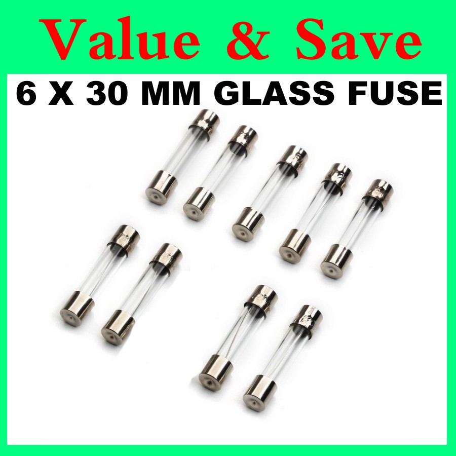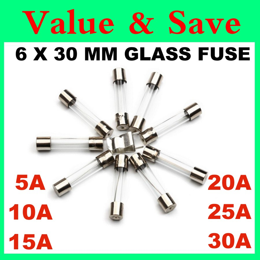 100pcs Glass Fuse Fius Kaca 5A 10A 15A 20A 25A 30A Glass Tube 12V 6mm x 30mm 12V Car Glass Fuses Car Accessorie Parts