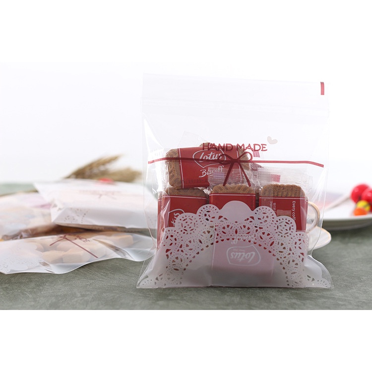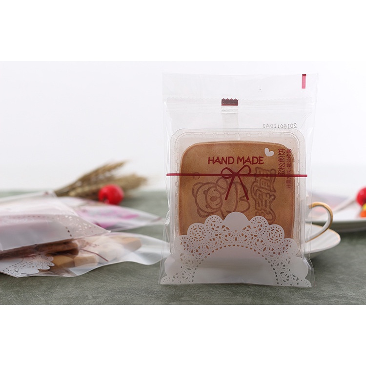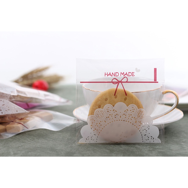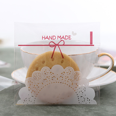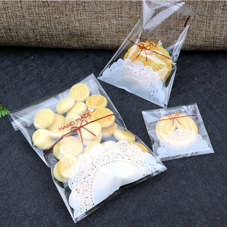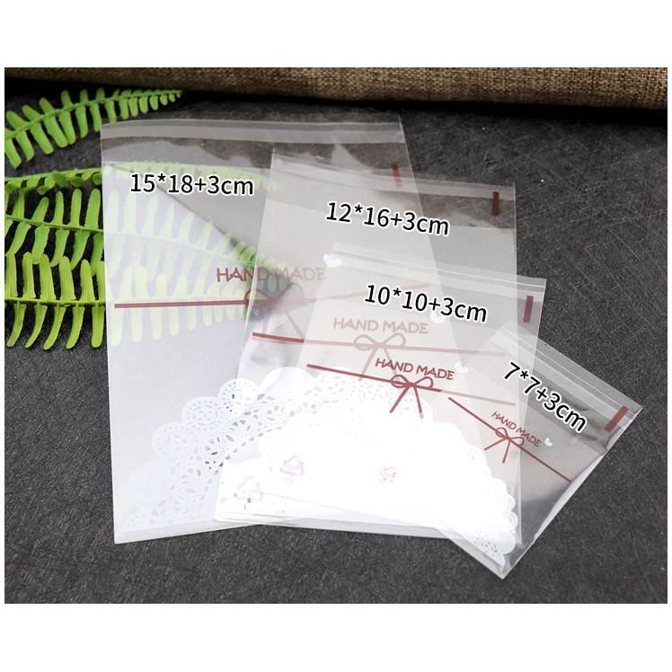 100pcs Handmade Design Self Adhesive Plastic Bag Bakery Plastics Bag Bread Candy Cookies Door gift Packaging