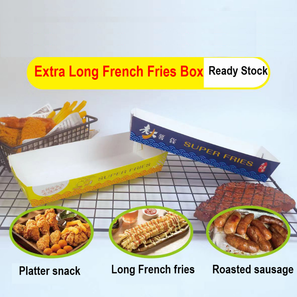 100pcs Long French Fries Box Disposable Paper Food Serving Tray Long Potato Box Corndog Box Sausage Box