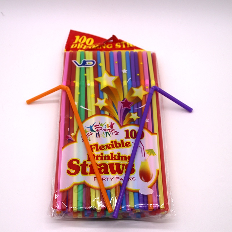 100pcs Plastic Drinking Straws 8 Inches Long Multi-Colored Striped Bedable Disposable Straws Party Multi Colored Rainbow Straw