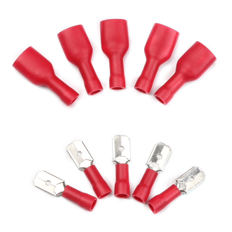 100pcs Red Female + Male Spade Insulated Electrical Crimp Terminal Connectors Wiring Cable Plug 22-18 AWG