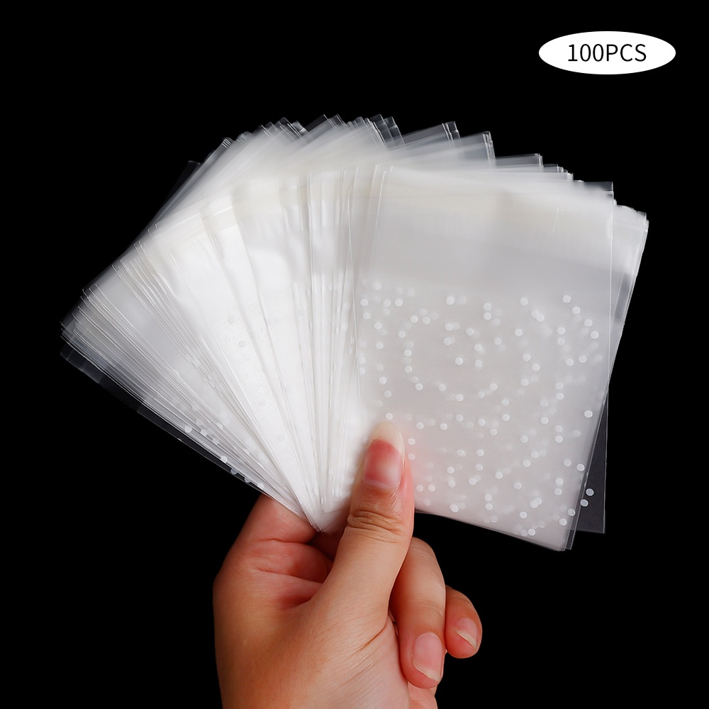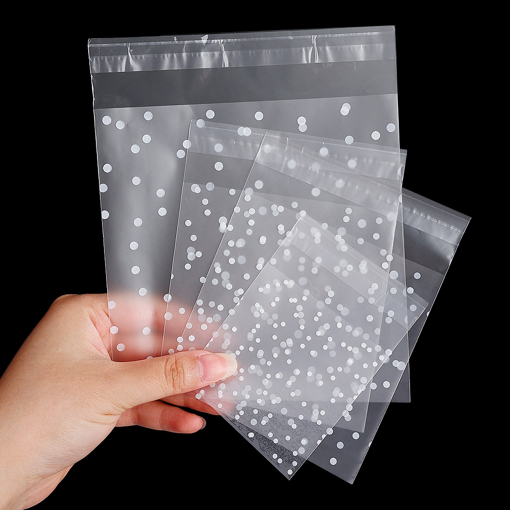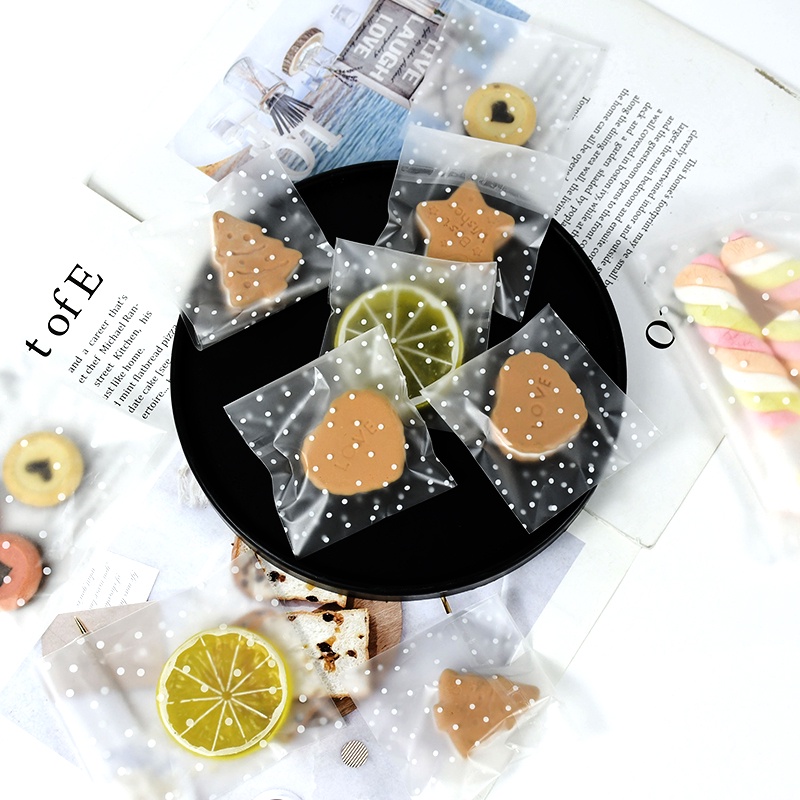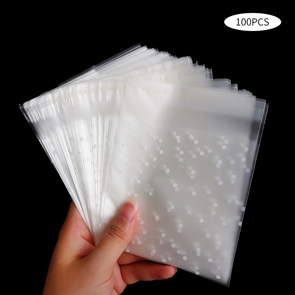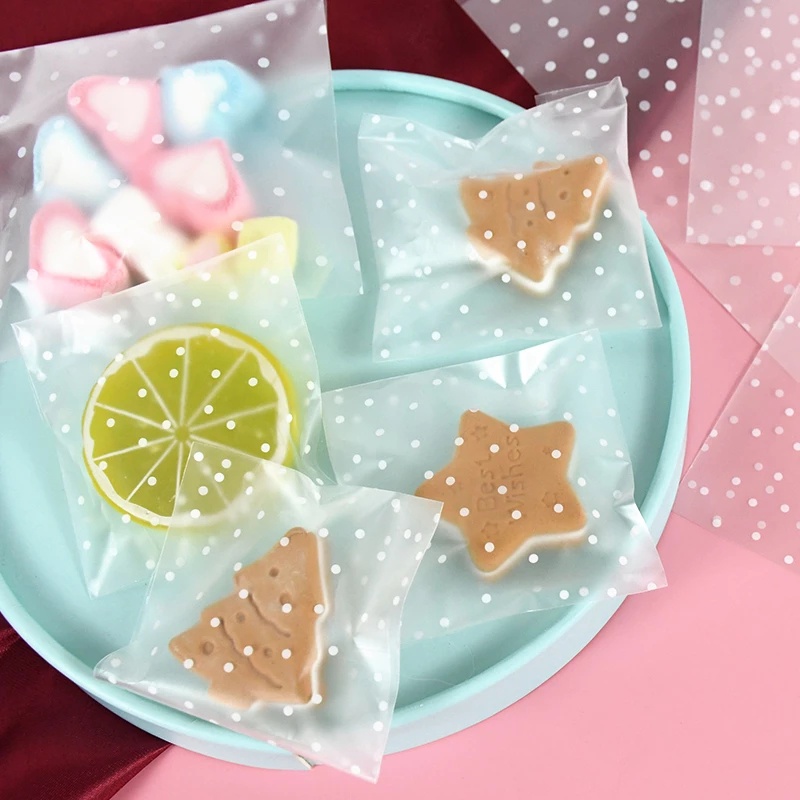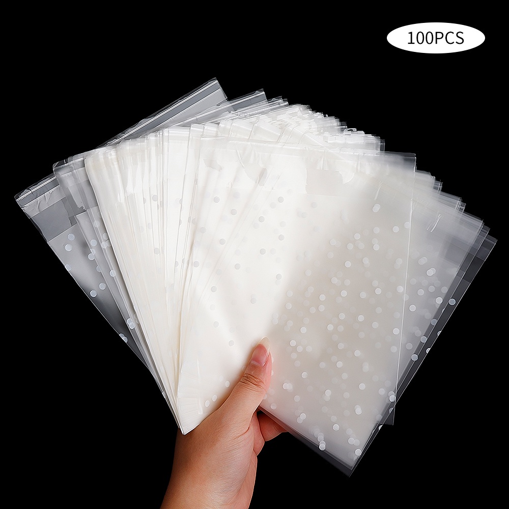 100pcs Transparent Dot Candy Packaging Bags Plastic Clear Food Cookie Present Bags Self-Adhesive Frosted Pouch DIY Wedding Birthday Biscuit Snack Children's Favorites Party Favors