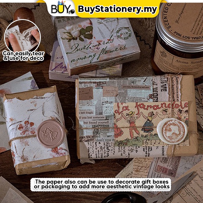 100pcs Vintage Retro Note Deco Paper Craft Scrapbook Journal Decoration Memo Minimalist Decor Kertas (JA07)-100pcs/Box
