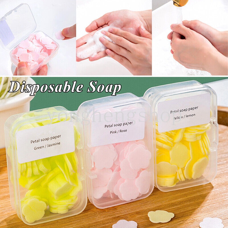 100pcs/box Travel Portable Soap Paper with Box Bath Handwashing Disposable Soap Slice Mini Flower Scented Petal Soaps Flakes