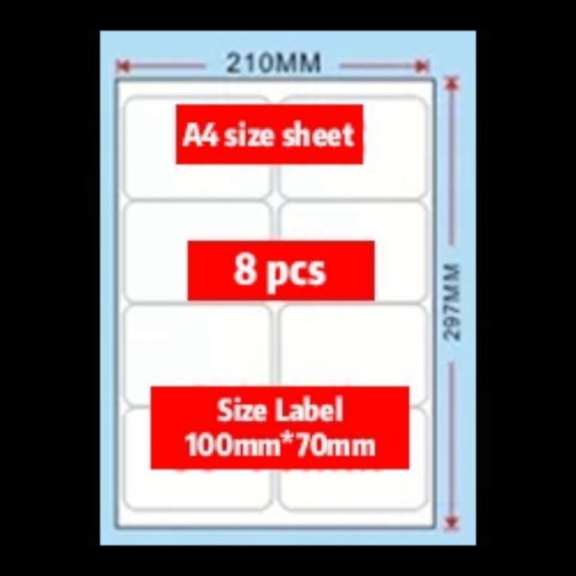 100pcs plain white Full A4 Half A4 Quarter A4 More Size Printing Sheet Label Sticker Paper multi inkjet laser printer