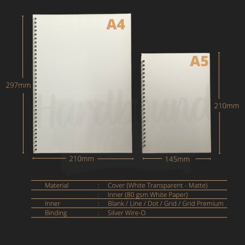 100pgs Transparent Notebook / Journal / Buku Nota -Blank-Line-Dot-Grid-Grey Grid White Line Grid A4 A5 A6