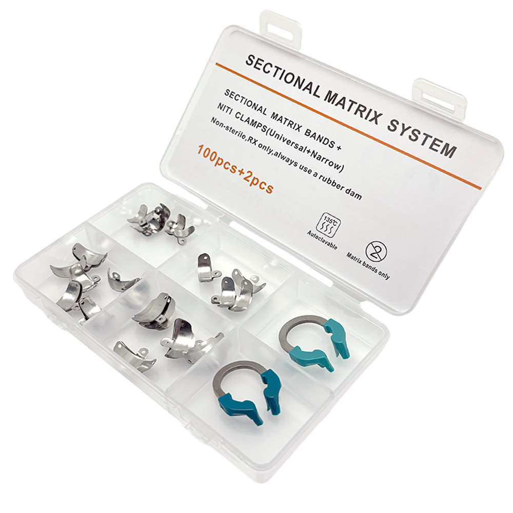 102Pcs/box Dental Matrix Band Sectional Contoured Matrix System Metal Matrices Matrix Clamp Nickel Titanium Clamping Ring Dental Tools