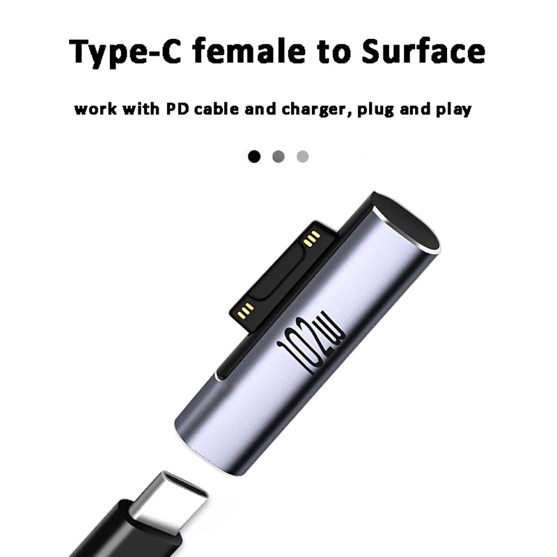 102W USB Type C PD Fast Charging Plug Converter for Microsoft Surface Pro 8 7 6 5 4 3 Go Surface Book 1 2 3