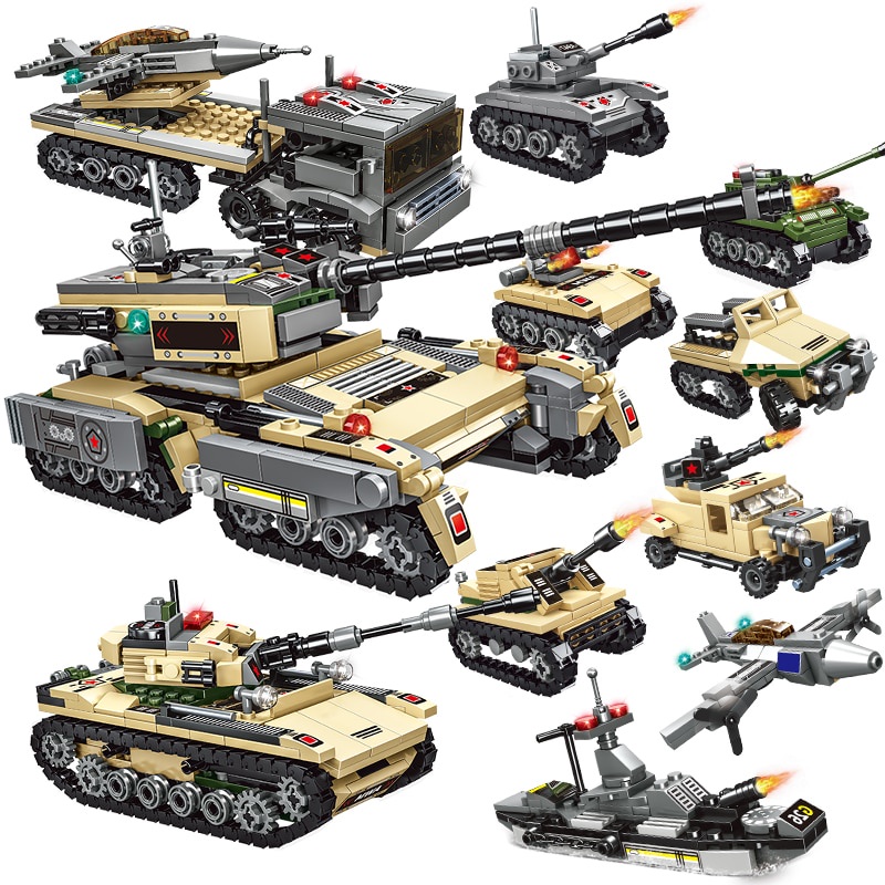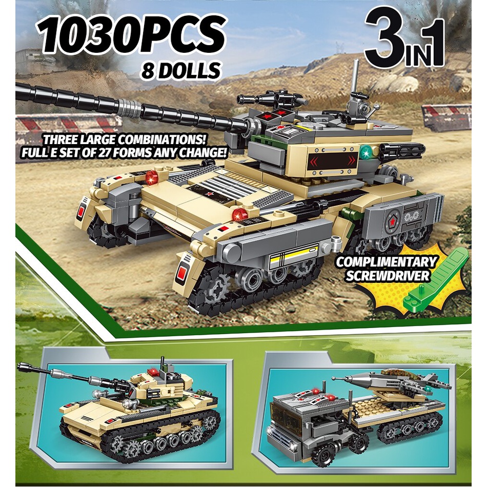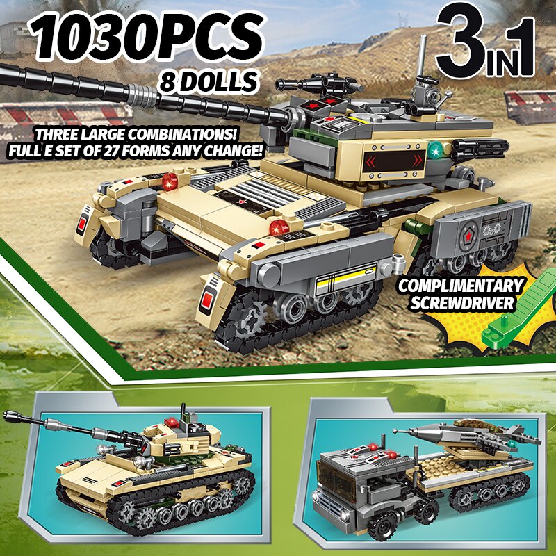 1030Pcs City WW2 Technical Assault Tank Building Blocks Military Weapon War Chariot Soldiers Figures Bricks Toys For Chi