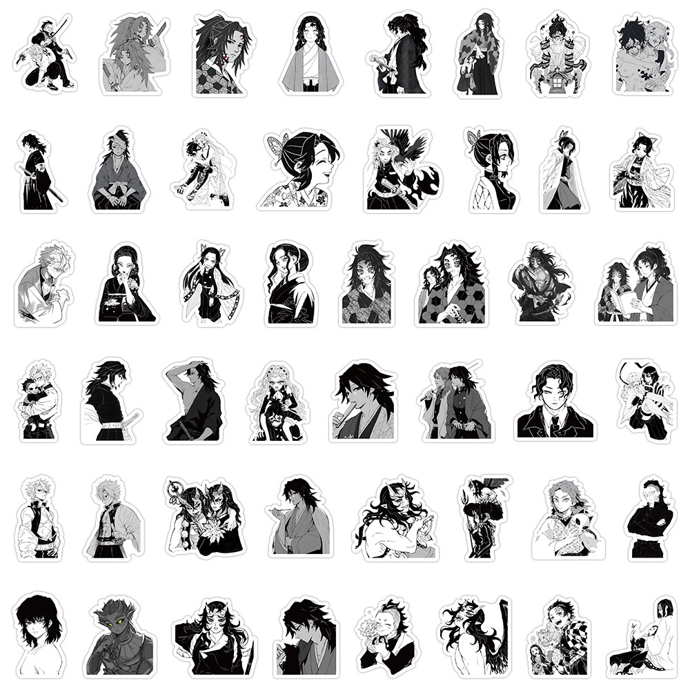 103PCS Black and White Anime Demon Slayer Kimetsu No Yaiba Graffiti Waterproof Stickers For Helmet Bicycle Hand Account Pencil Case Decals LanLanStickersWorld