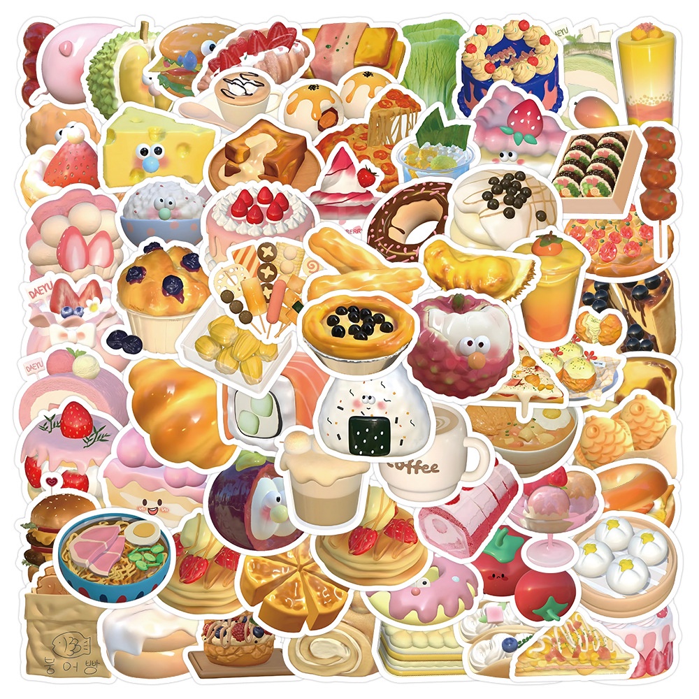 103PCS Cute Cartoon 3D Food Sushi Bread Desserts Stickers For Helmet Bicycle Hand Account Pencil Case Decals LanLanStickersWorld