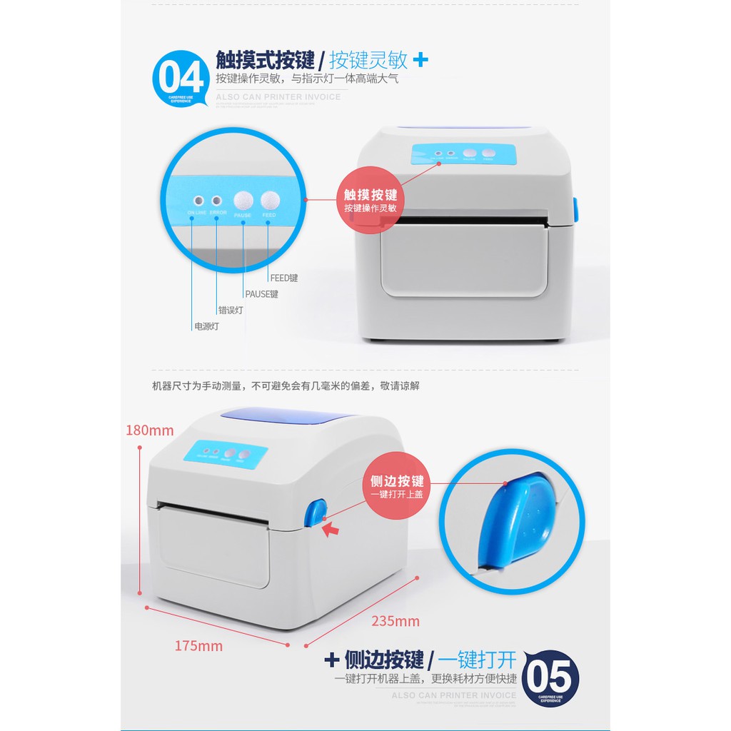 104mm thermal label sticker printer A6 shopee shipping label express barcode print GP1324D shopee waybill
