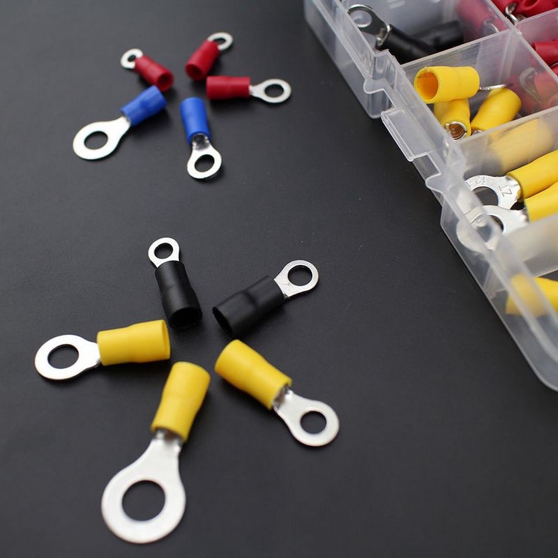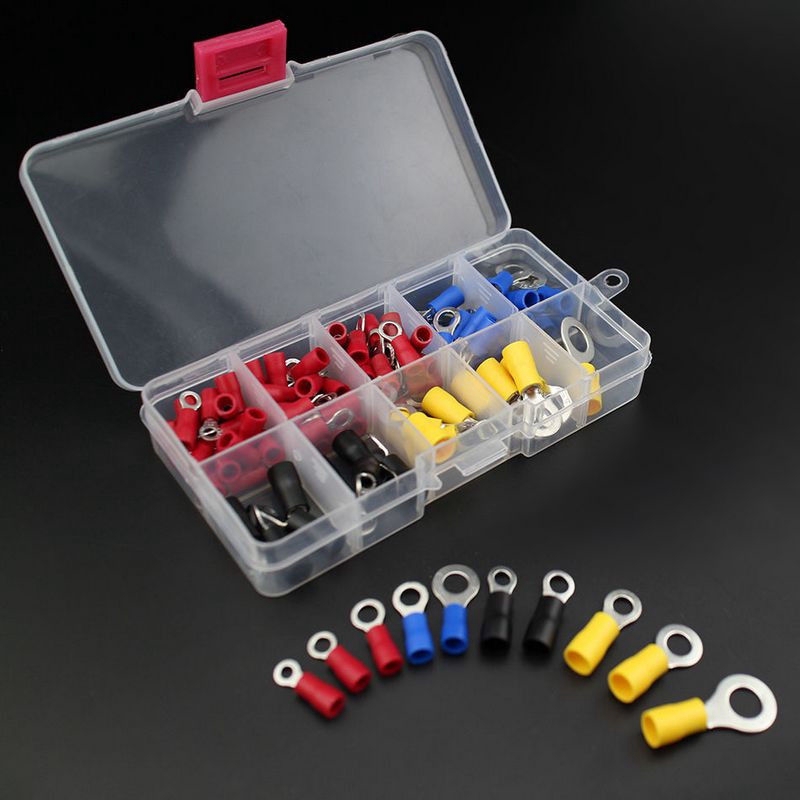 105PCS RV Ring Terminal Electrical Crimp Connector Kit Set With Box Copper Wire Insulated Cord Pin End Butt