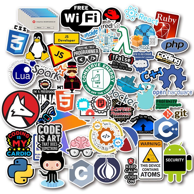 105pcs Programmer Sticker Laptop Tech Developer Decals C# C++,Pyt Pack Random Decals
