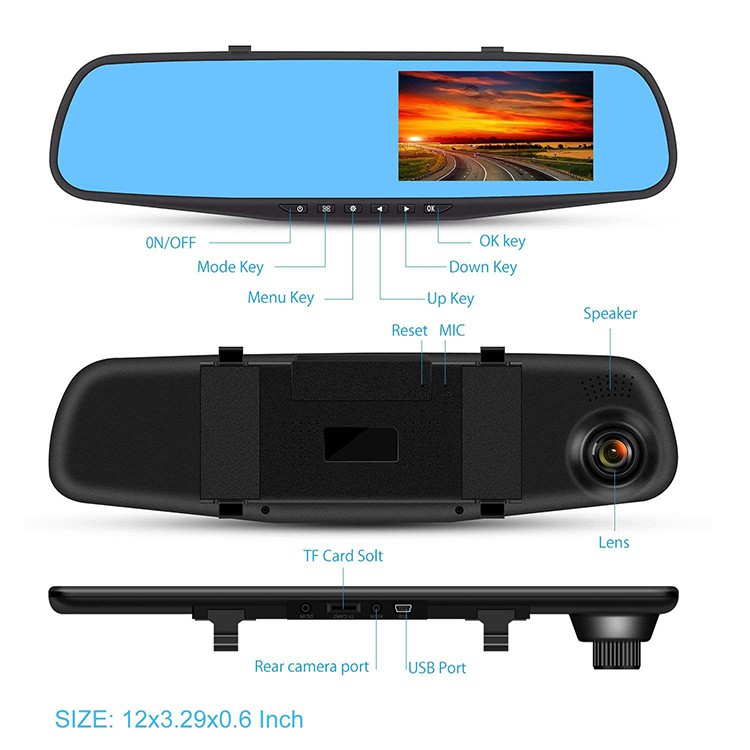 1080P FULL HD Mirror Car Dash Cam Front & Back Video Camera Recorder GOQ D208