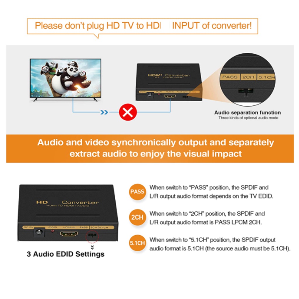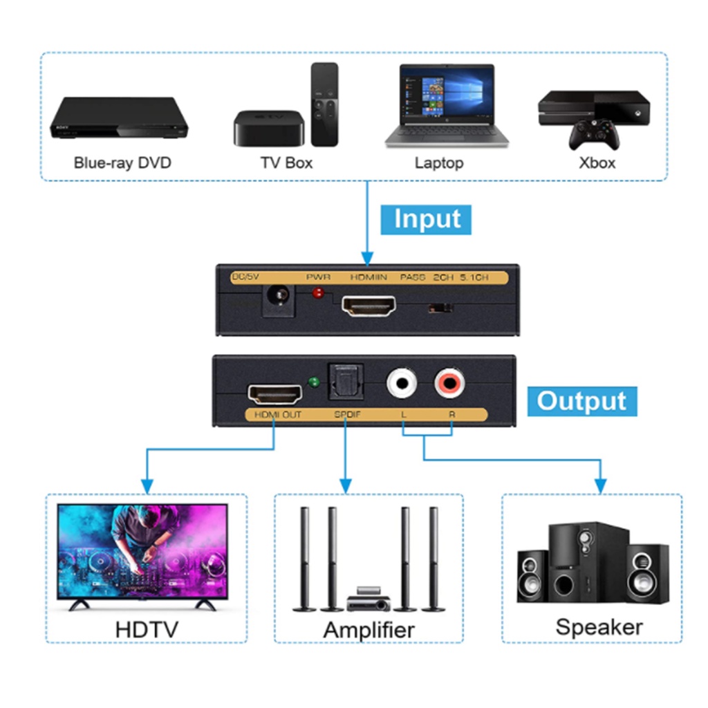 1080P HDxl Audio Extractor Splitter Audio Converter + Optical Toslink SPDIF + RCA L/R Stereo for tvbox smart tv
