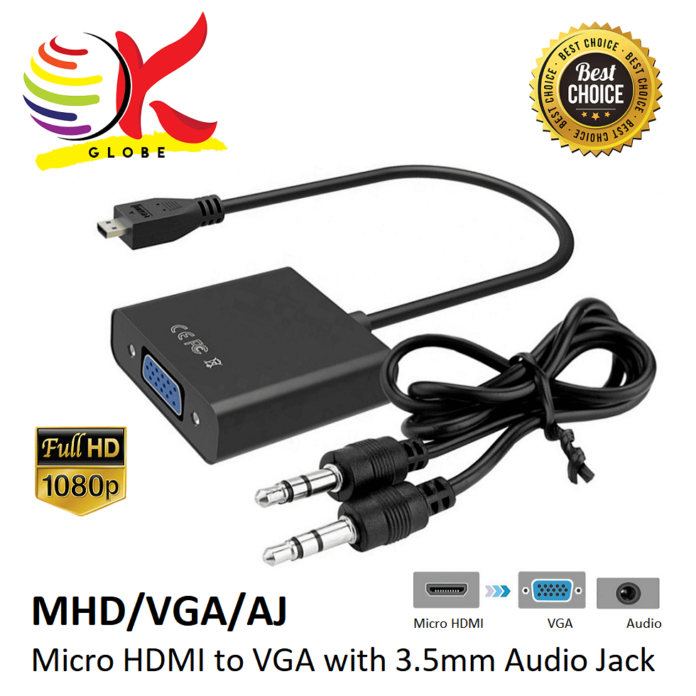 1080P MICRO HDMI TO VGA CABLE ADAPTER CONVERTER WITH AUDIO, MICRO HDMI MALE TO VGA FEMALE MHD/VGA.
