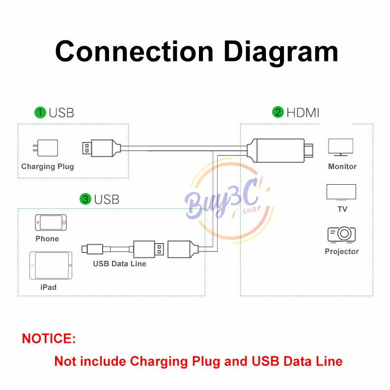 1080P Phone to HDMI HDTV AV Adapter Cable Android/iOS/TypeC EZCast Connector Cable Universal MiraScreen Cable