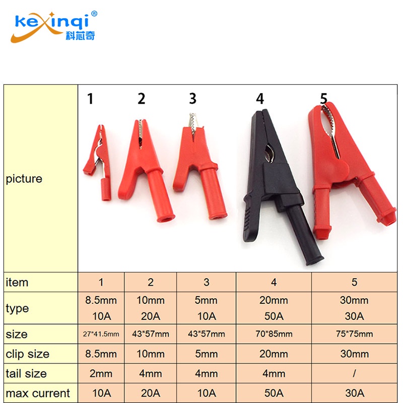 10A 20A 30A 50A Alligator Clip Crocodile Adapter 2mm 4mm Plug for Multimeter Pen Test lead Cable Insulated Handle Electric