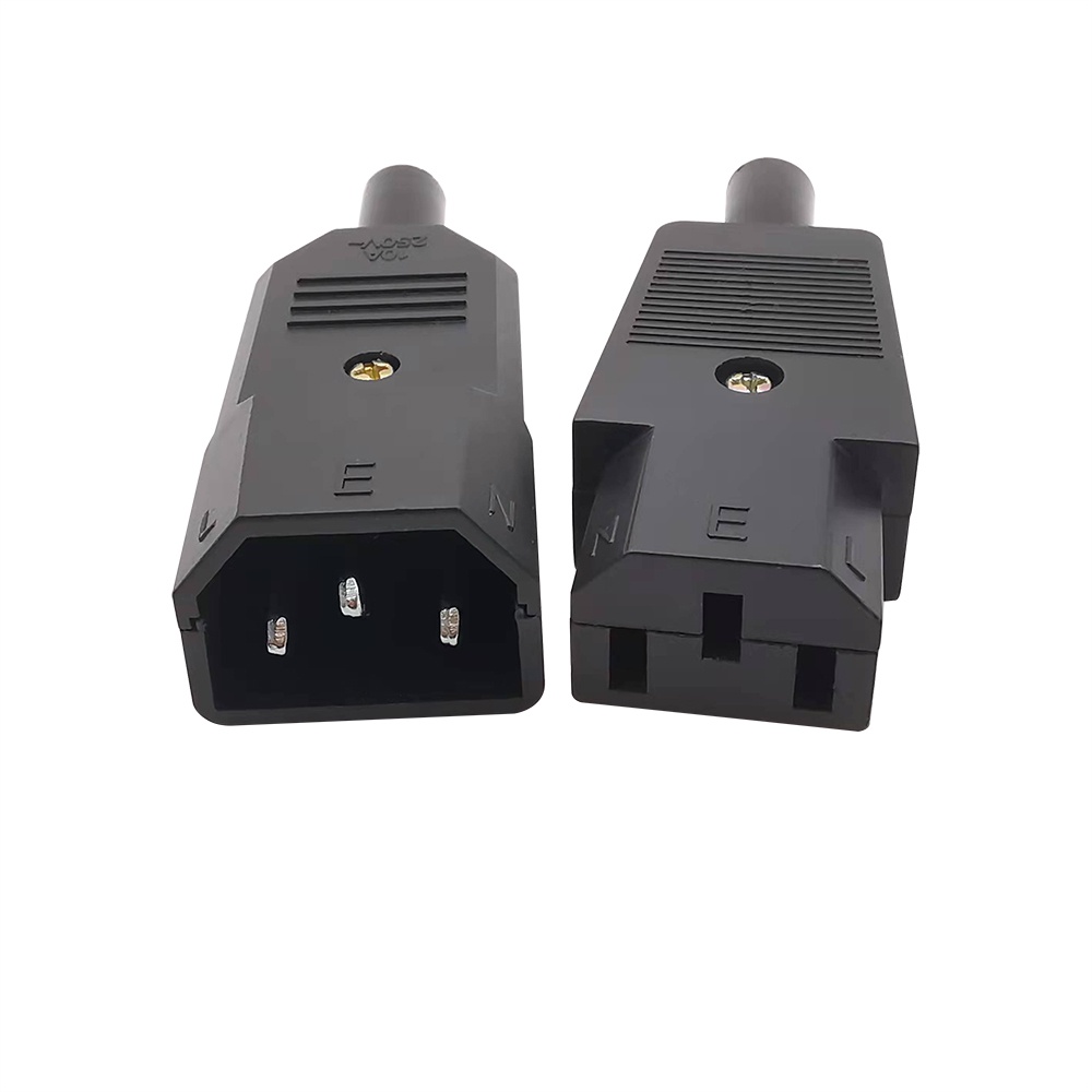 10A 250V Black IEC C13 C14 female&male Plug Rewirable Power Connector 3 pin ac Socket