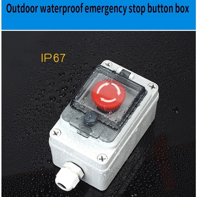 10A IP66 Emergency Stop Control Box 10A Outdoors Button Switch Cassette Tape Protect Shield Waterproof Urgent Stop Button Control Box Ip67