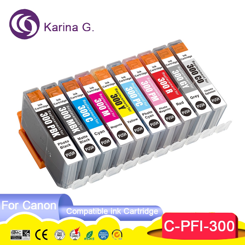 10Color PFI 300 PFI300 PFI-300 Premium Color Compatible Inkjet Ink Cartridge for Canon imagePROGRAF PRO-300 Printer 11WU