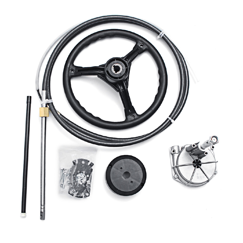 10FT Marine Engine Rotary Steering System Steering Helm Boat Mechanical Cable & Wheel 90 Degree Bearing Bezel Kit