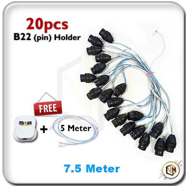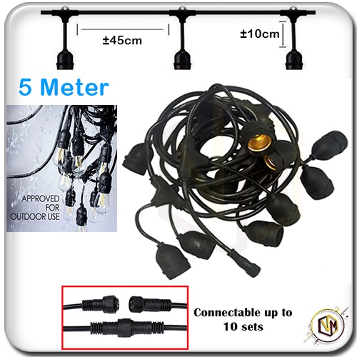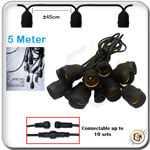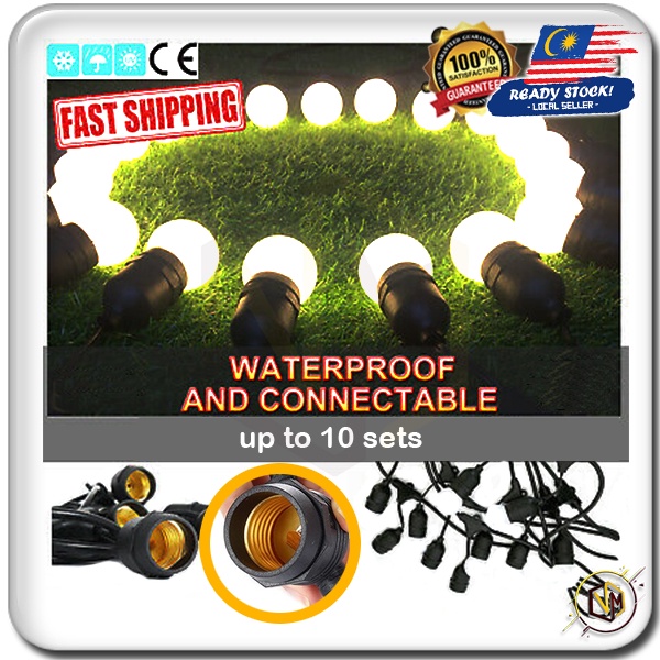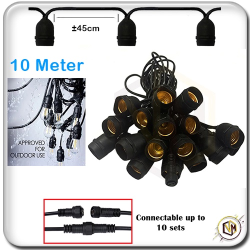 10MTR X 10 E27 Lamp Holder Waterproof Outdoor LED Light Garden Waterproof Flexible Hanging Sockets Patio Light Raya
