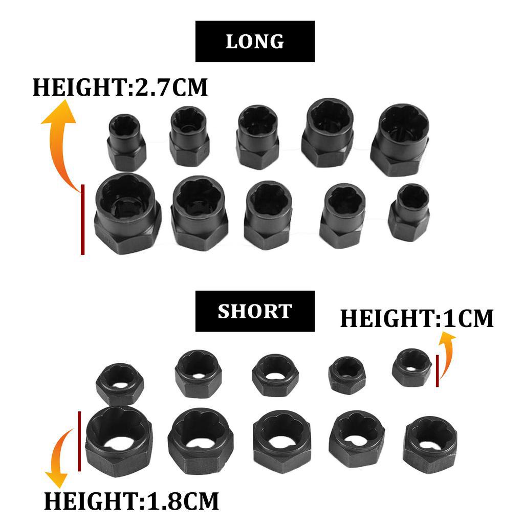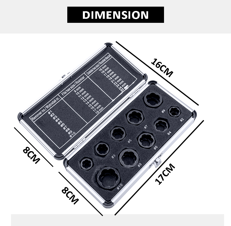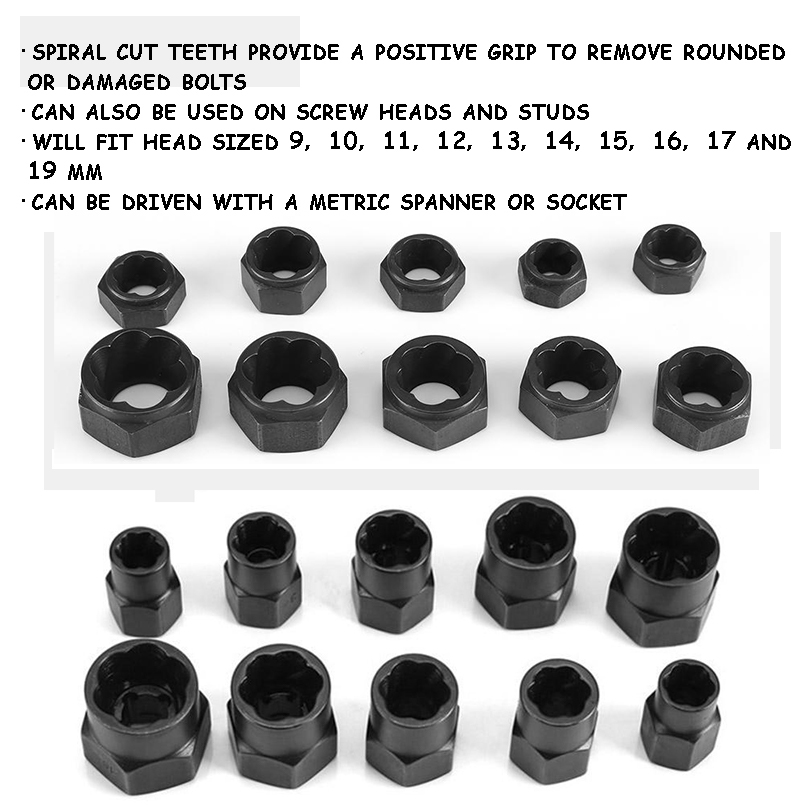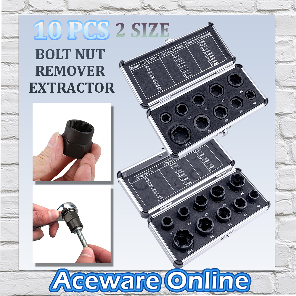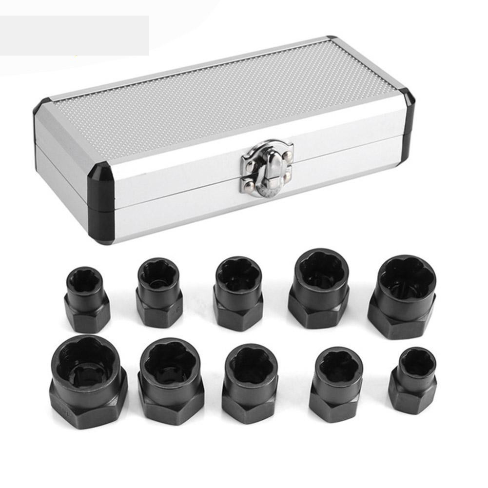10PCS [ 9MM-19MM ] BOLT NUT SCREW REMOVER EXTRACTOR REMOVAL SET WITH CASE THREADING HAND TOOLS