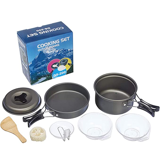 10PCS Camping Cookware Kit DS200 Cooking Set Hiking Picnic Pot Backpacking Outdoor Frying Pan Bowl / Peralatan Memasak