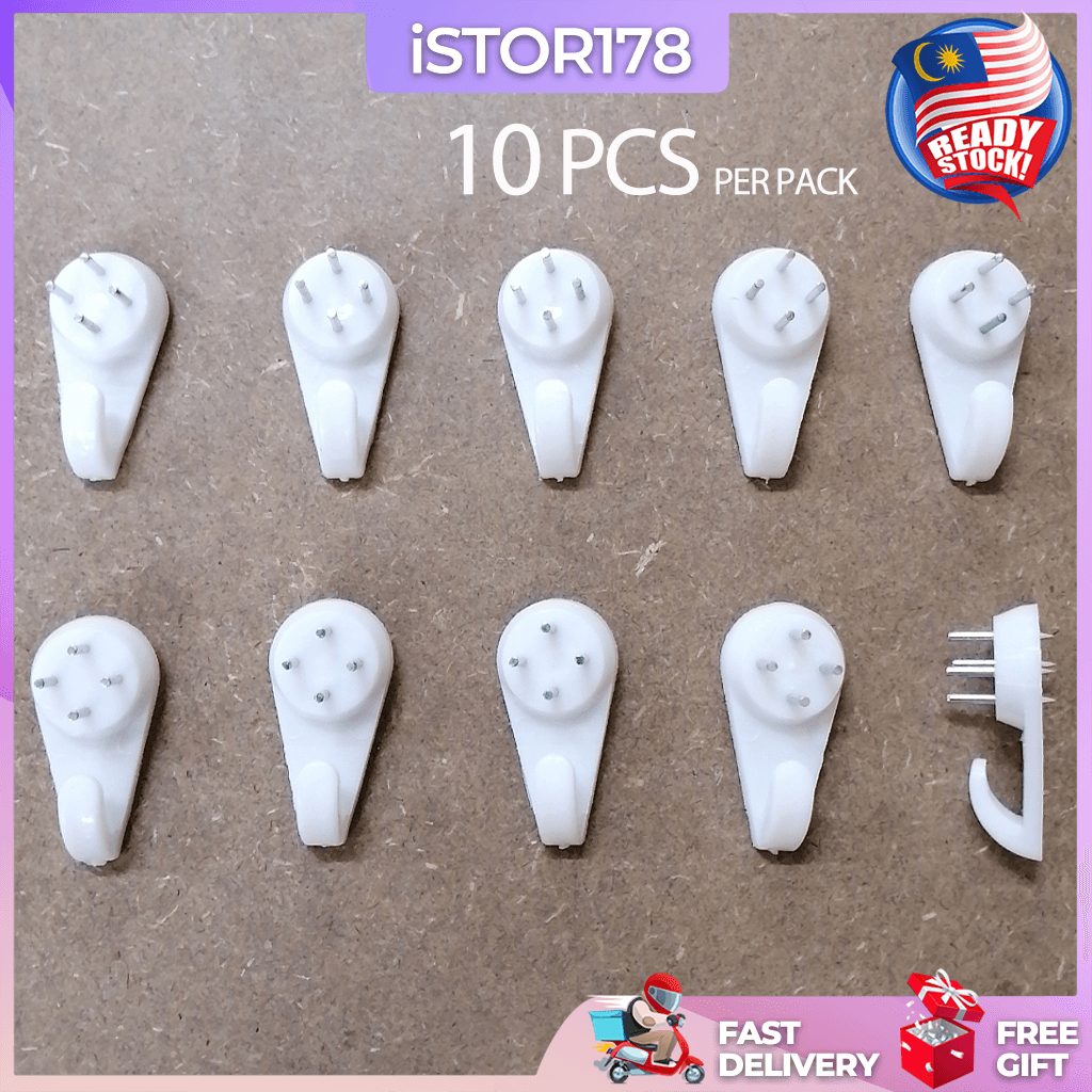 10PCS WALL MOUNT WHITE HOOK/ STRONG INVISIBLE NAIL HOOK/ FRAME HANGER/ PAINTING WALL NAIL 无痕强力钉勾 <READY STOCK> ISTOR178