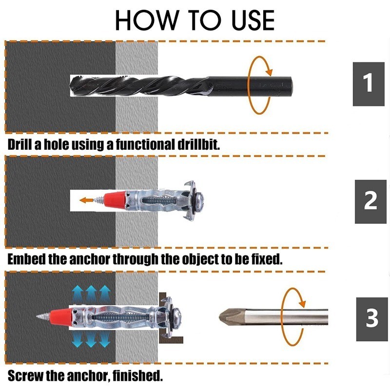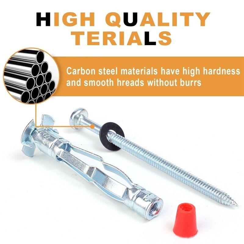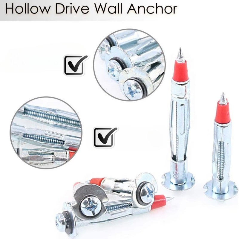 10Pcs Galvanized Carbon Steel Hollow Wall Drive Anchors Red Pointed Expansion Cross Screws Plasterboard Hanging Fasteners